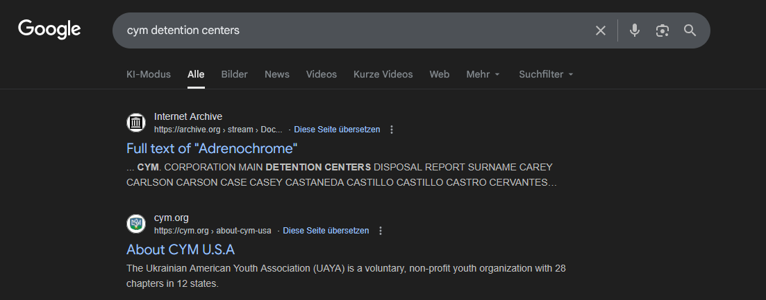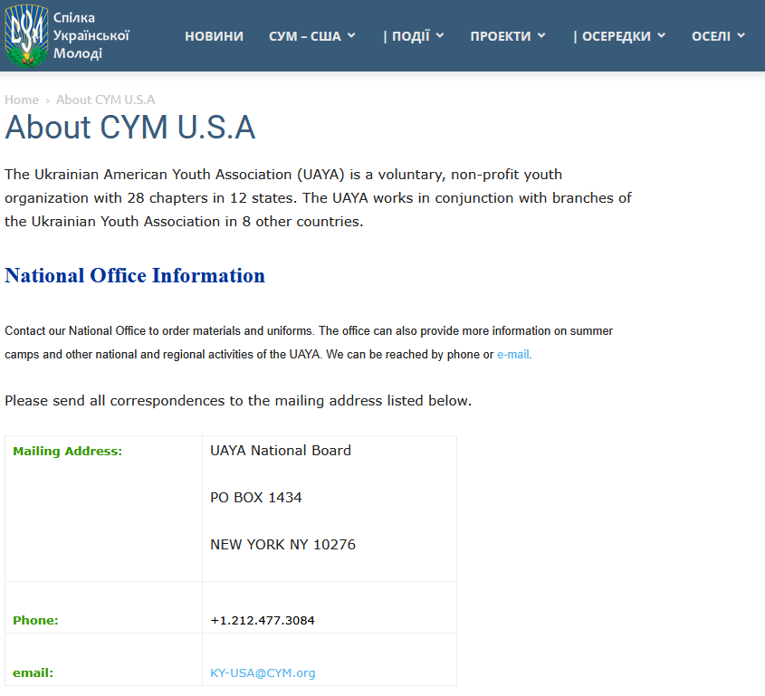 Sucht man online nach „CYM detention centers“, landet man auf der Website von CYM U.S.A. The Ukrainian American Youth Association (UAYA).