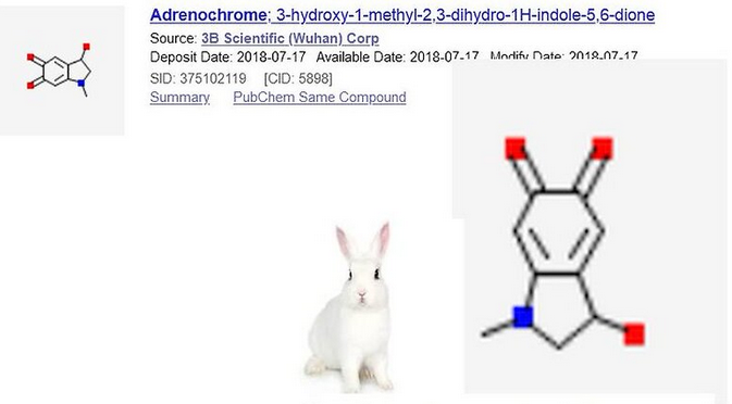 Adrenochrome wird wegen seiner Struktur auch „white rabbit molecule“ genannt.