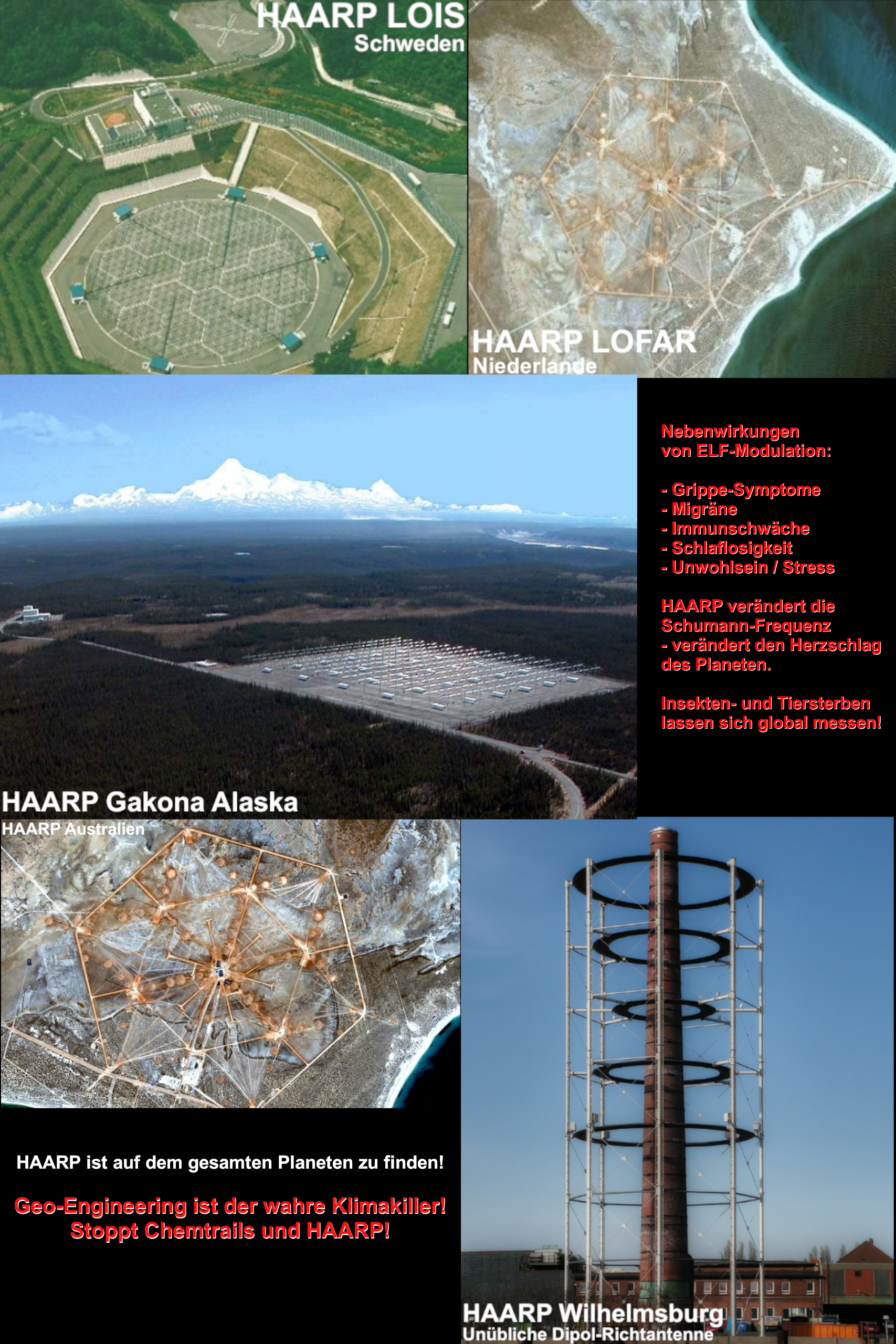 1982 begannen die Sowjets über elektromagnetische Strahlungen gezielte Erwärmungen in der Ionosphäre zu verursachen, was erstmals Jet-Streams und somit das globale Klima beeinflusste. Die unterliegende Technik mit ELF-Wellen das Wetter zu manipulieren, welches bei den Russen Duga-1 (Woodpecker) genannt wurde, wurde von den Amerikanern unter dem Namen HAARP (High Frequency Activ Auroral Research Program) und dem Deckmantel der Polarlichtforschung adaptiert. Heute finden sich solche HAARP-Anlagen weltweit (auch in Deutschland) und dank ihnen ist es globalistischen Interessengruppen und Geldgebern möglich, global das Wetter zu kontrollieren und nach eigenen Belieben Katastrophen und Unwetter zu provozieren. Der Fakt, dass der deutsche Luftraum seit dem 2. Weltkrieg amerikanisches Hoheitsgebiet ist, erleichtert es diesen besagten Globalisten zudem enorm hierzulande ihre Interessen durchzusetzen.